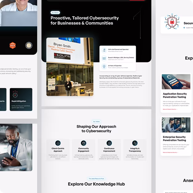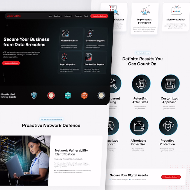 Their target clients — enterprise security teams and the executives who sign off on security budgets — needed to feel confident before ever picking up the phone. In the cybersecurity space, a generic or underbuilt website doesn’t just fail to impress; it actively signals risk. With complex service offerings spanning AI security assessments, cloud infrastructure testing, and advanced network penetration testing, Redline needed a platform that could communicate technical sophistication without losing the non-technical stakeholders who control the buying decision.