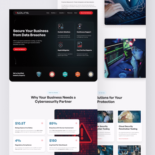 Redline Cyber Security needed a website as precise and expert-driven as their penetration testing. We built a platform that earns enterprise trust before the first conversation — and earns it through every technical and design decision made along the way.